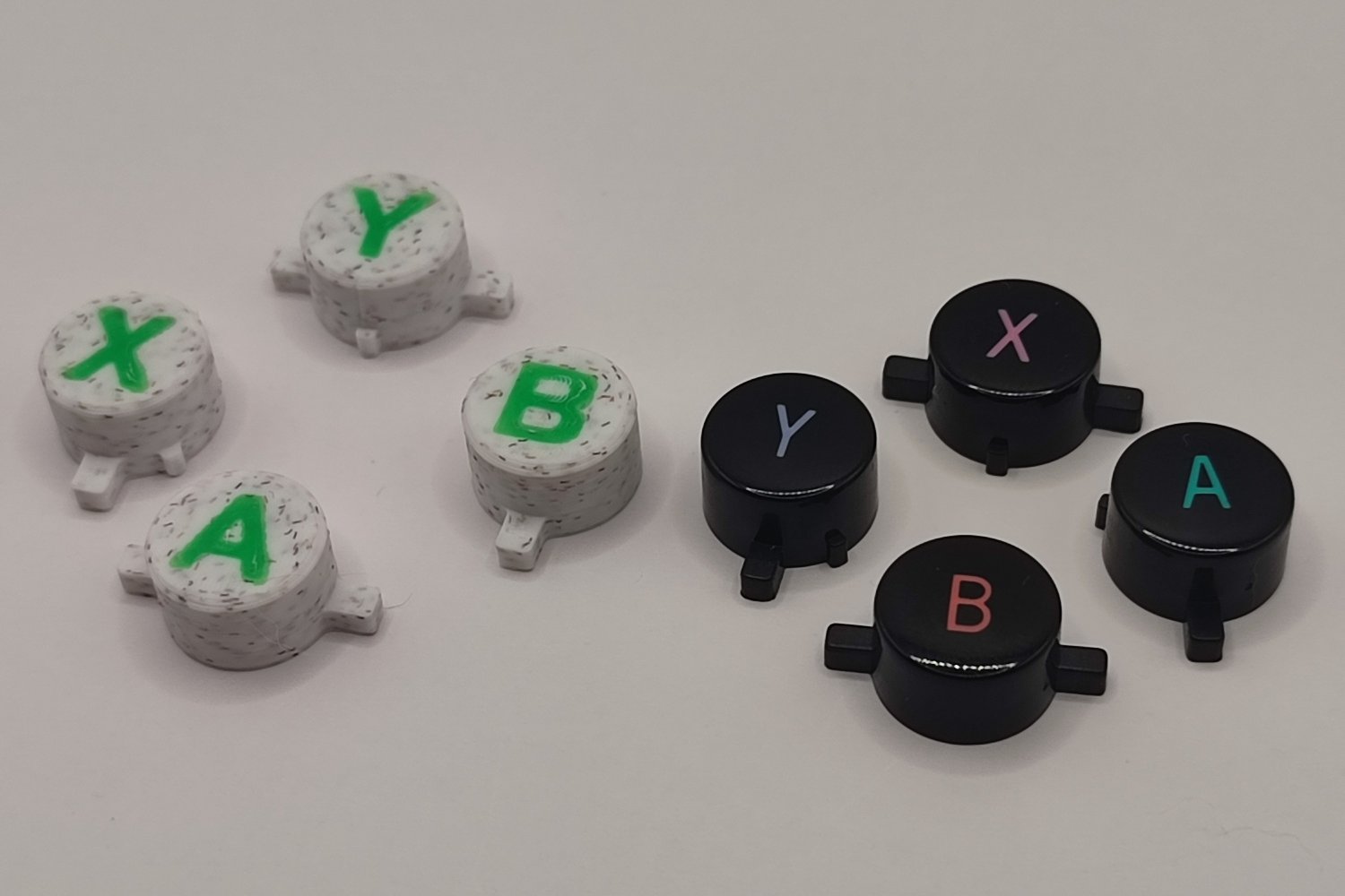 Les boutons « X, Y, A et B » de ma manette 8BitDo ne sont pas à la bonne position. Pour corriger cela, j’ai modélisé et imprimé de nouvelles touches. Puis, j’ai démonté la manette et ai remplacé les boutons.