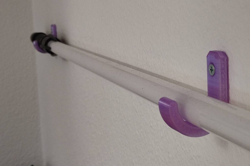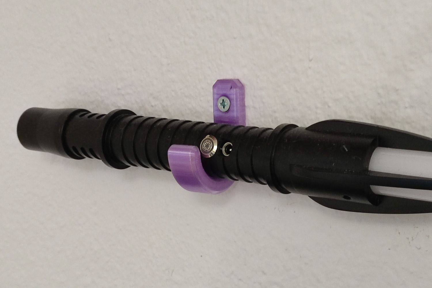 Ma cliente a acheté un sabre laser et a souhaité l’accrocher au-dessus de son lit. J’ai conçu des petits crochets pour le fixer et elle y a accès facilement.