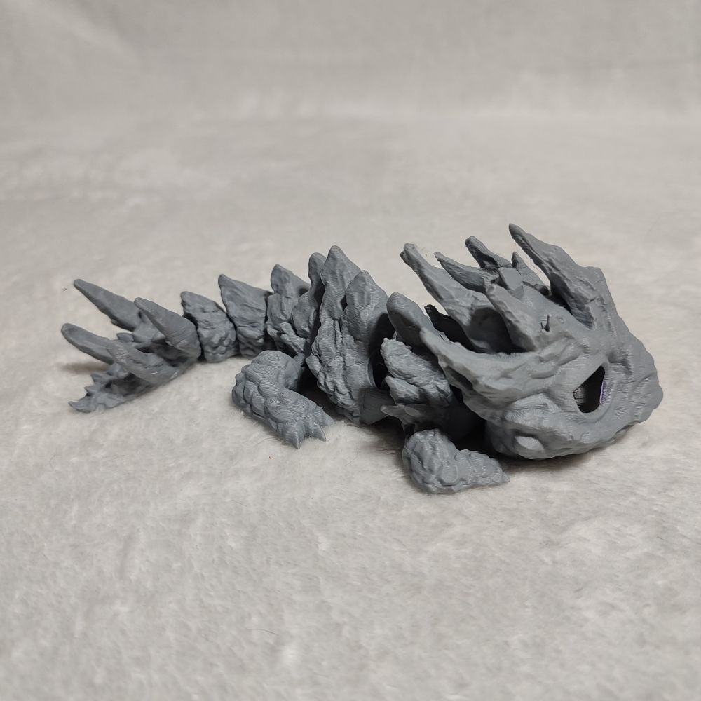 Une figurine articulée robuste et charmante, idéale pour les amateurs de dragons et de créations dans un style rocheux.