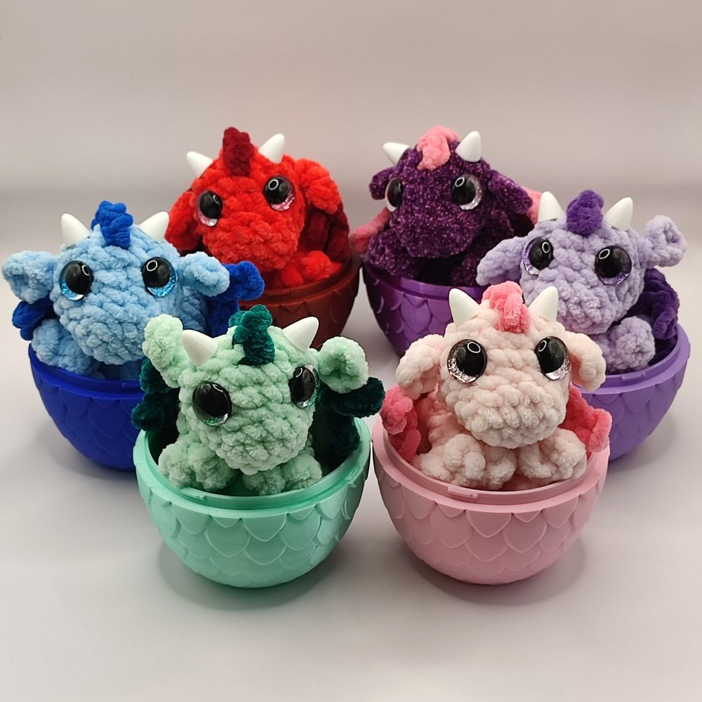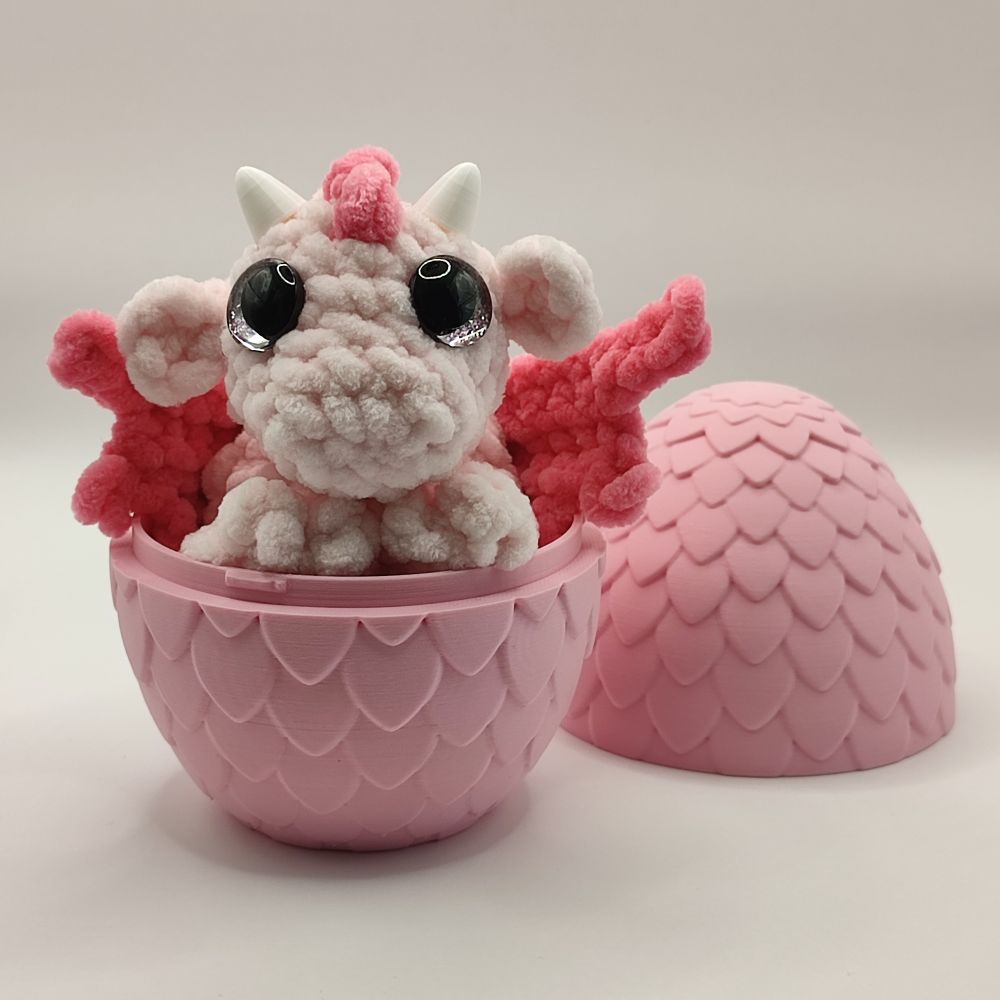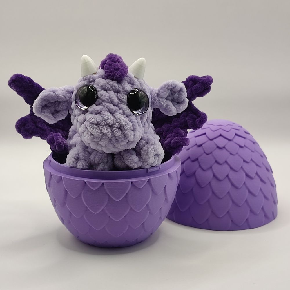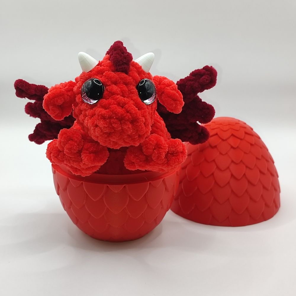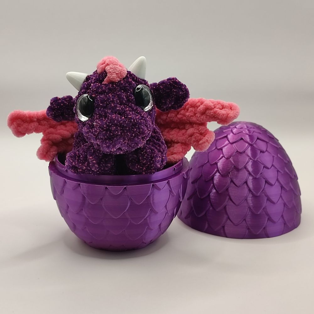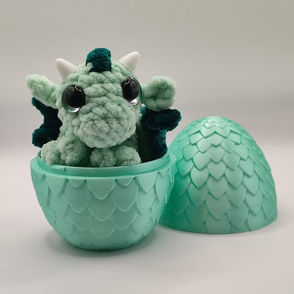 Pack à prix réduit contenant un dragon en crochet fait main avec son œuf imprimé en 3D.